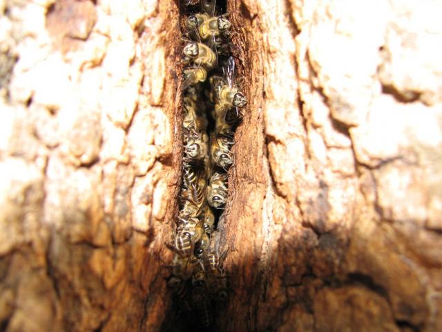Divje čebele si najdejo prebivališče tudi v razpoki debla. Ni možnosti ropanja s strani človeka, razen če bi podrl drevo - kar pa bi tudi bilo možno...če le ni predebelo...